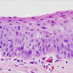 Lesión roja, aterciopelada y brillante, bien delimitada, que se extiende lentamente. Pre-maligna. El tratamiento combina un abordaje médico y quirúrgico que ha de ser cuidadosamente planificado.